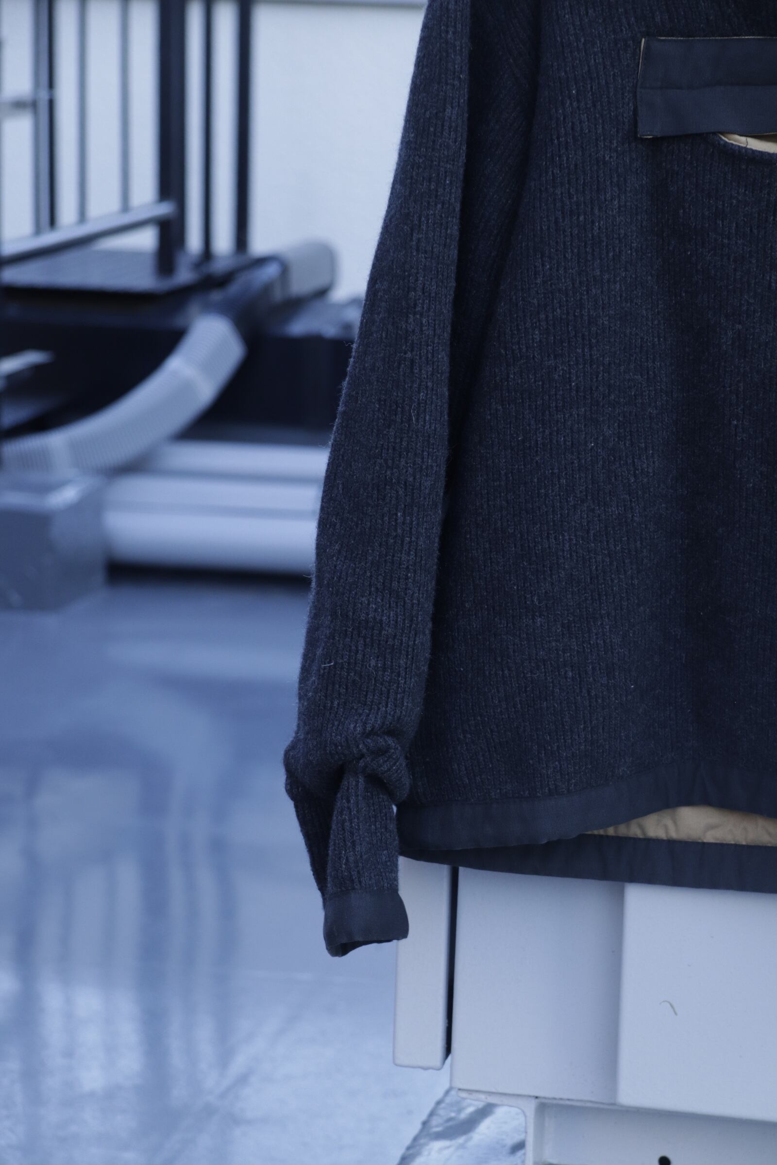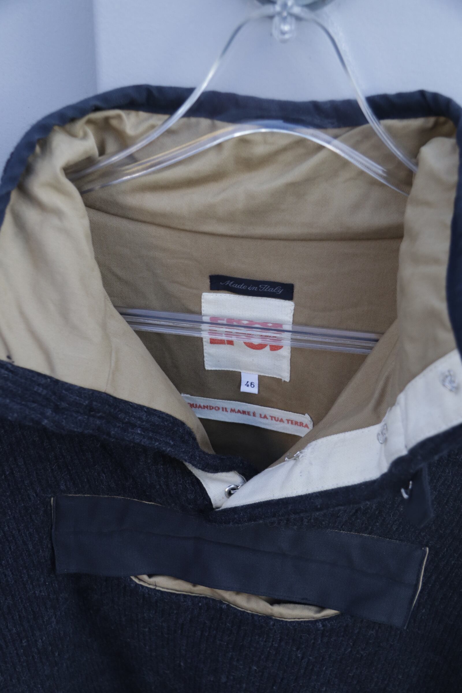 シェルがウールで裏地がチノでずっしりとしたプルオーバー